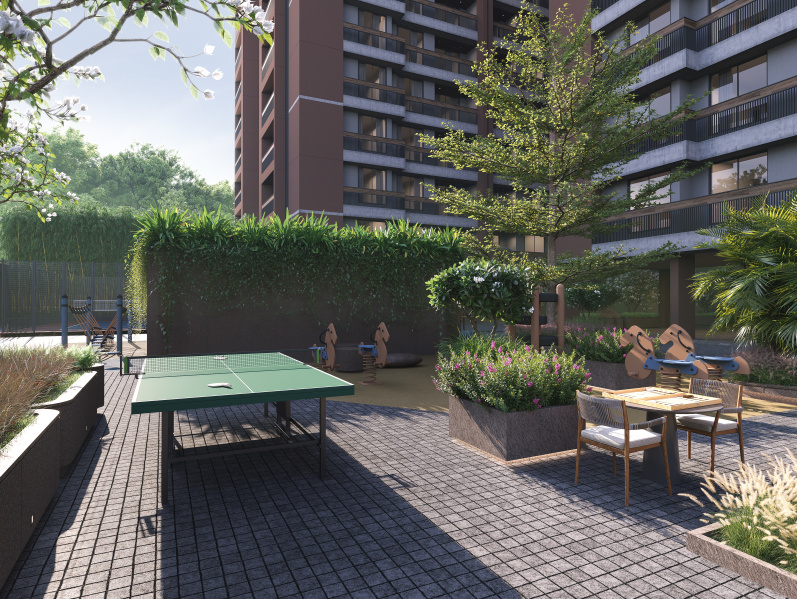 Set on a prominent three-road corner near Bhuyangdev Cross Road and Sola Road, Rameshwar City enjoys excellent connectivity to BRTS, schools, hospitals and major shopping hubs. The design emphasizes light and ventilation while the retail zone brings daily conveniences within the campus itself. Residents can expect thoughtfully planned common areas, landscaped greens and a secure, well-maintained environment.