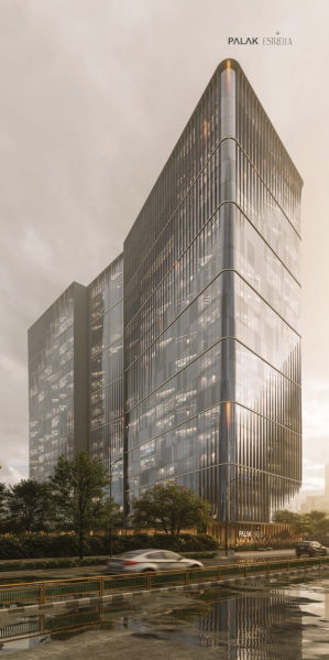 Palak Estrella is a premium commercial development coming up in Ambli, directly opposite Swati Senor, with possession slated for December 2027. Spread over a 6100 sq. yd. plot, the project is designed as a modern business hub with two towers rising G+21 floors. Together, the towers will house 336 offices, supported by a robust infrastructure of 12 high-speed lifts—six in each block—for smooth vertical movement.